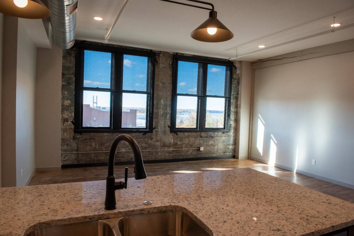 This beautifully designed 2-bedroom, 1-bath industrial loft apartment offers breathtaking western views of the Mississippi River. Inside, you'll find original hardwood floors, exposed industrial details and an open-concept layout perfect for relaxing and entertaining. The kitchen features stainless steel appliances, a sleek tiled backsplash and soft-close cabinetry, while the bathroom includes a full tub surround for added comfort. Each bedroom is furnished with a ceiling fan and the living spaces are equipped with roller-shade window blinds for privacy. In-unit washer and dryer add convenience and central heating and air conditioning ensure year-round comfort. And yes-your dog is welcome here too. The building is designed for modern living, offering a fitness room, secure package receiving room, keyless entry and elevator access. From your living room, enjoy breathtaking sunset views over the river, all while being connected to the heart of Quincy's historic charm. Tho. Framed Mirrors, Heat, Range, View, Dishwasher, Dryer, Hardwood Flooring, Individual Climate Control, Microwave, Refrigerator, Tile Flooring, Washer, Window Coverings, Disposal, Hard Surface Counter Tops, Island Kitchen, Air Conditioner & Controlled Access.