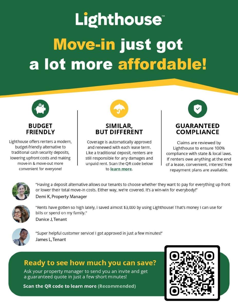 Fees: Rent $695 (mandatory, monthly). Resident Benefit Package $40 (mandatory, monthly). Lease Signing Fee $125 (mandatory, nonrefundable, move-in). Security deposit $695 (mandatory, refundable, move-in). Lease Term: 1 year.
