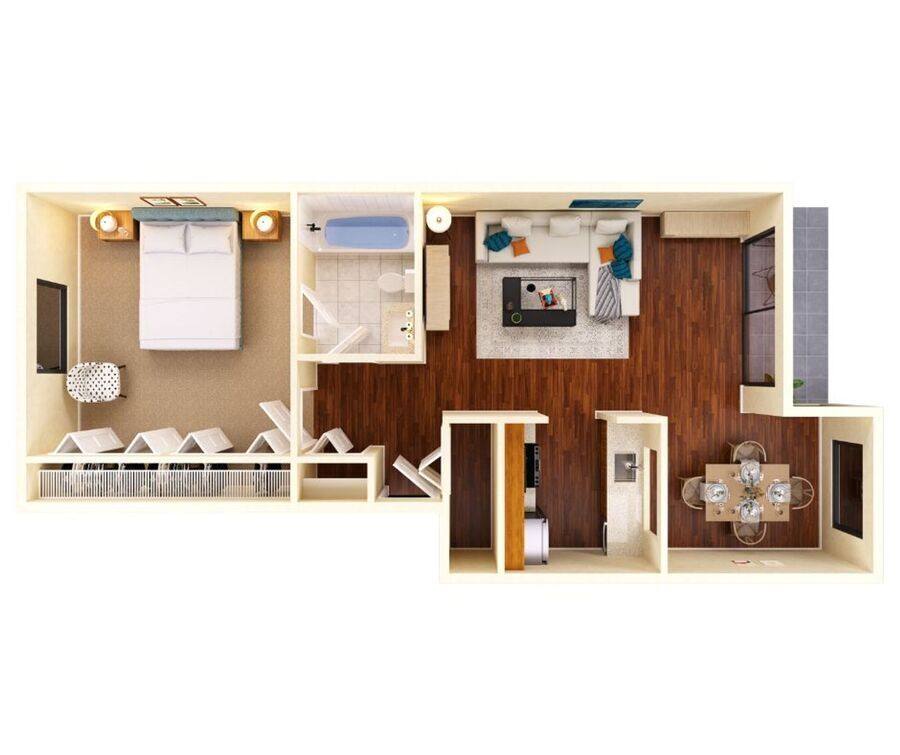 Enjoy comfort and style in this thoughtfully designed 1-bedroom apartment home. The open-concept living and dining area features plenty of natural light. The modern kitchen offers ample cabinet space and overlooks the dining area, perfect for entertaining. Retreat to the large bedroom with generous closet space and unwind in the full bath with contemporary finishes. Step outside to your private patio or balcony and relax in your own peaceful retreat. Pet Friendly, Dogs ok & Cats ok.