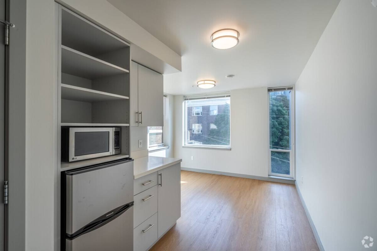 Welcome to Kulle Urban Living, a contemporary apartment community designed for efficient, stylish city living in Seattle's vibrant Capitol Hill neighborhood. Located at 1815 Bellevue Ave, Seattle, WA 98122, Kulle blends modern design with smart functionality-perfect for students, professionals and urban explorers alike. The name Kulle, Swedish for hill, reflects both the property's Nordic-inspired simplicity and it's prime Capitol Hill location. Opened in 2016, Kulle Urban Living offers thoughtfully designed micro-studios and lofted studios that maximize space without compromising comfort. Each apartment features hardwood-style flooring, large windows for abundant natural light, private bathrooms and efficient kitchenettes equipped with stainless steel appliances, including a refrigerator and microwave. Individual heating systems ensure year-round comfort. Residents enjoy a variety of community amenities tailored to urban lifestyles, including a breathtaking rooftop deck with panoramic views of the Seattle skyline, Space Needle and Lake Union-an ideal spot to relax or socialize. Additional conveniences include secure intercom-controlled access, on-site laundry, dedicated package lockers, bike storage and a welcoming community lounge with Wi-Fi. Highly sought after by students, Kulle Urban Living is just minutes from Seattle University and offers easy access to the University of Washington, public transit, nightlife, dining and local culture. Kulle Urban Living is where modern design meets effortless city living-right in the center of it all....