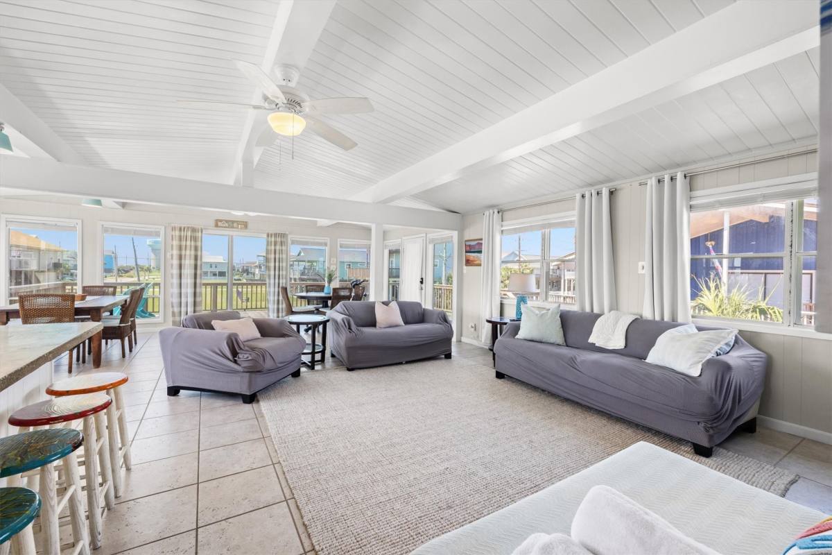 Welcome to this charming 2-bedroom, 1-bath beach bungalow in the heart of Sea Isle, offering views of the sparkling beach. This turnkey furnished home offers a spacious, open-concept living and dining area with stylish shiplap ceilings, perfect for relaxing or entertaining. Both bedrooms have direct access to a private side deck, ideal for enjoying serene mornings with a cup of coffee as the sun rises over the water or unwinding with an evening drink as the sun sets. As a resident, you'll have access to Sea Isle's top-tier amenities, including a pool, boat launch, private fishing pier, park, pickleball courts and a Marina. Whether you're looking to explore the outdoors or simply bask in the peaceful surroundings, this home captures the essence of island living.