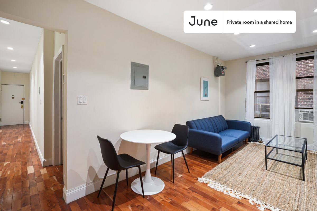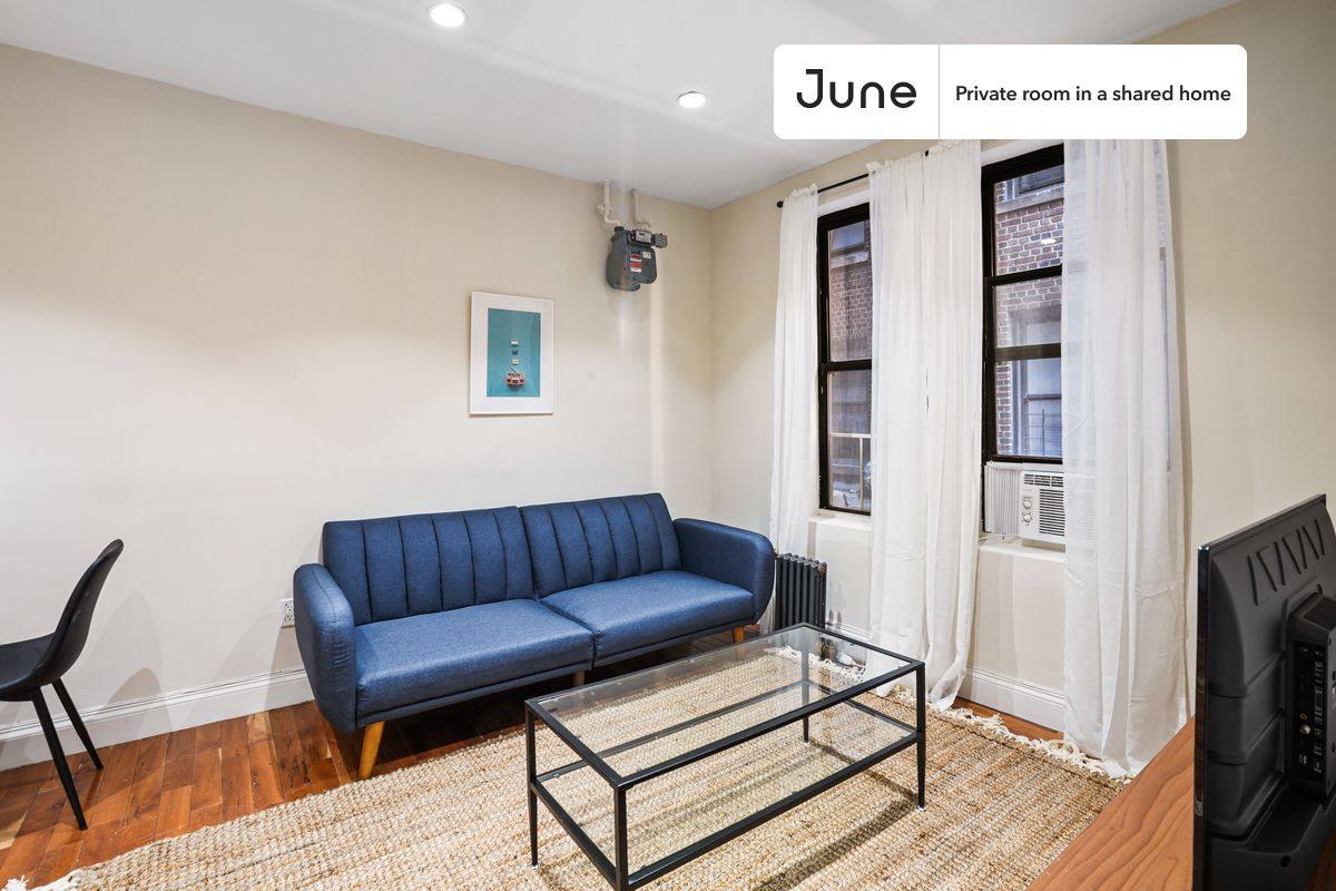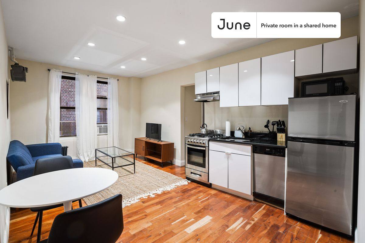 Move in this February and save up to $300 on your stay. Use code: Hellofeb. This is a private room in a shared apartment. You will have your own bedroom and shared common areas (kitchen, bathroom, etc). with other residents. Full bedroom in a 2 bedroom / 1 bathroom apartment. This Full room in East Harlem offers flexible lease lengths, including a standard 12-month term and options up to 18 months. You pick your custom start and end date. Monthly rent rate is determined by furnishing preference, move-in date and move-out date. Amenities of this home: Dishwasher, Furnished Common Areas, WiFi - Paid separately (High-Speed), Guarantors Allowed, 32-inch Flat-Screen Tv, Street parking - City permit required, Laundry in home (free), Hardwood Flooring, Microwave, Oven, Refrigerator, also, this unit is conveniently located, several local parks, restaurants and bars are just minutes away. About June Homes: Welcome to the easiest rental experience of your life. Rent furnished or unfurnished apartments available with a flexible lease, including a standard 12-month term and options up to 18 months. As a resident, you'll have access to 24/7 support and monthly cleanings of the home's shared spaces. Brokers welcome. Contact us for more details.