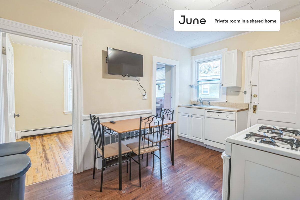 This is a private room in a shared apartment. You will have your own bedroom and shared common areas (kitchen, bathroom, etc). with other residents. Queen bedroom in a 4 bedroom / 1 bathroom apartment. This Queen room in North Cambridge is available on a 12 month lease or a flexible short term (31 to 364 days) lease. You pick your custom start and end date. Monthly rent rate is determined by furnishing preference, move-in date and move-out date. Amenities of this home: Dishwasher, Furnished Common Areas, WiFi - Paid separately (High-Speed), Guarantors Allowed, Dine in kitchen, Paid parking, Wall-Mounted Tv, Hardwood Flooring, Microwave, Oven, Refrigerator, Heating - Baseboard Gas heating, also, this unit is conveniently located, several local parks, restaurants and bars are just minutes away. About June Homes: Welcome to the easiest rental experience of your life. Rent furnished or unfurnished apartments on a 12 month lease or a flexible short term (31 to 364 days). As a resident, you'll have access to 24/7 support and monthly cleanings of the home's shared spaces. Brokers welcome. Contact us for more details. Kindly note that the minimum stay duration would be 31 days.