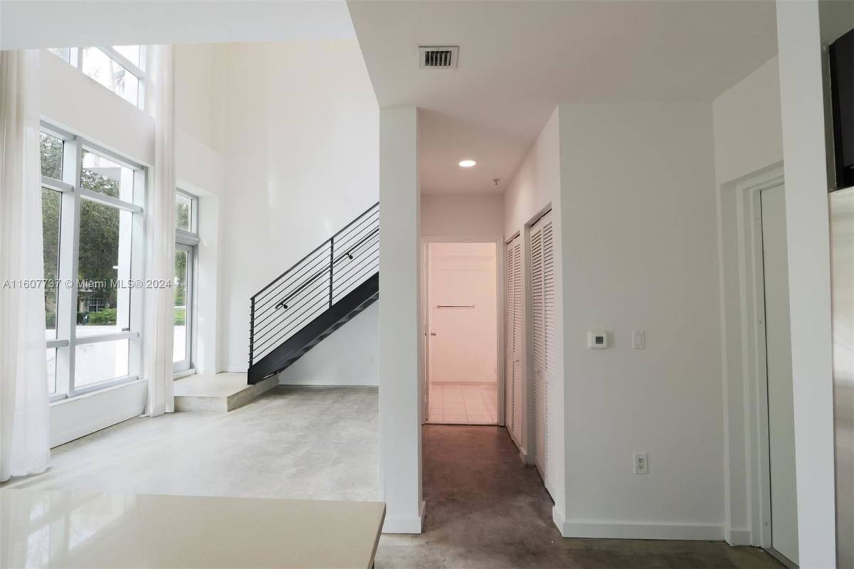 Two stories 2/1 and 1/2 ground floor condo Loft concept with street Direct ACCESS/FRONT Patio. Facing North unit has a modern Kitchen-Stainless Steel appliances, spacious living room with lots of light (2 level height) Half bath ground floor. Full bath, one enclosed divided loft concept bedroom and an open concept 2nd bedroom with walk-in closets upstairs. Mondrian inspired building with a lovely ambience lobby with 24 hrs. front desk (Lofts wing has it's own boutique separate lobby) beautiful infinity pool with jacuzzi and ample sundeck, also offers sauna rooms, spacious party room and Gym. Centrally located on the Edgewater area and very close to Midtown, Art District and Downtown. Professionally managed-Renter's insurance, 1st month's rent, 2 months security deposit to move in.