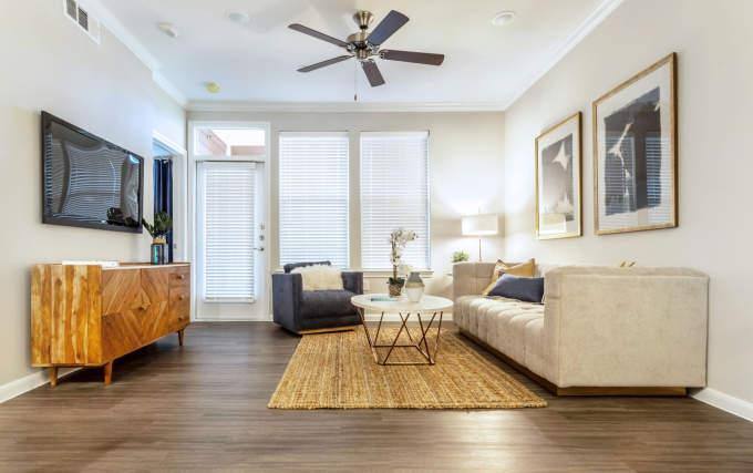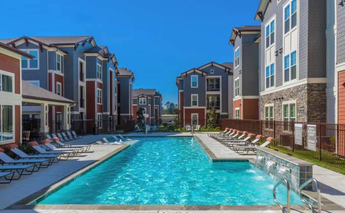 This apartment is located in the Cypress Station area of Spring TX 77388. One bedroom apartments start at $1159. Two bedroom apartments start at $1389. This property was built in 2020 and has 168 units. This community is not authorized to accept housing vouchers. No felony convictions in the last 10 years. No evictions or broken leases. No temporary housing. Must rent for 6 months or longer. You must be employed and have verifiable income. The actual price of this rental is dependent on the day you need to move. The rent can change daily based on availability of the unit. We have placed sleek and modern ceiling fans throughout the apartment. Our living spaces offer beautiful crown molding. They are perfect for a modern and upscale living room. Crown molding is elegant and sophisticated, making it a perfect addition to any apartment. The balcony and patio is a great way to spend time with friends or family. Having a space to sit and relax outside is important for your well being. Enjoy premium hardwood floors, ceramic tile and upgraded carpet throughout. Our comfortable apartments include air conditioning to keep your home at the forefront of temperature control. Whether you are cooking up a batch of homemade pancakes or making a simple salad, our gourmet kitchens are equipped with all of the necessary tools to make your time in the kitchen a dream. Granite countertops, ample storage and chef inspired islands keep everything closeby....