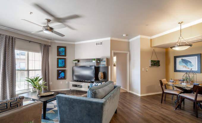 This apartment is located in the Carrollton area of Carrollton TX 75010. One bedroom apartments start at $1079. Two bedroom apartments start at $1395. Three bedroom apartments start at $1948. This property was built in 2000 and has 520 units. This community is not authorized to accept housing vouchers. No felony convictions in the last 10 years. No evictions or broken leases. No temporary housing. Must rent for 6 months or longer. You must be employed and have verifiable income. The actual price of this rental is dependent on the day you need to move. The rent can change daily based on availability of the unit. We have placed sleek and modern ceiling fans throughout the apartment. Our living spaces offer beautiful crown molding. They are perfect for a modern and upscale living room. Crown molding is elegant and sophisticated, making it a perfect addition to any apartment. The balcony and patio is a great way to spend time with friends or family. Having a space to sit and relax outside is important for your well being. Enjoy premium hardwood floors, ceramic tile and upgraded carpet throughout. We have built vaulted ceilings to create a contemporary and generous living space. Our comfortable apartments include air conditioning to keep your home at the forefront of temperature control. Enjoy a wood burning fireplace on chilly nights....