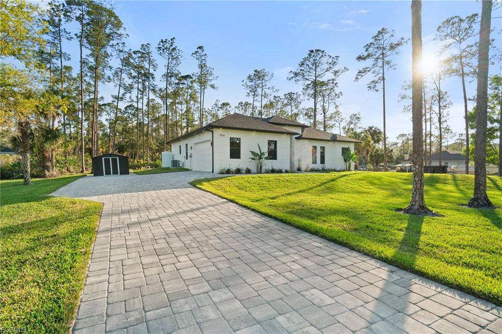 Take a look at this Golden Gate Estates Gem, brand new construction, ready to move in. This home is situated on a 2.5 acre rare Upland Lot and features 3 bedrooms plus a den, 3 bathrooms and a 2 car garage. Upgrades include wood plank porcelain tile throughout, crown molding, quartz countertops, stainless steel appliances and lovely solid wood cabinets. The living room and master suite will boast tray ceilings and the master wing featuring an oversized bedroom, 2 spacious closets, double vanity and a beautiful glass door enclosed shower. The outside of the home will not disappoint, with it's summer kitchen ready to host friends and family, impact resistant doors and windows, to a beautiful landscape with 2.5 acres.