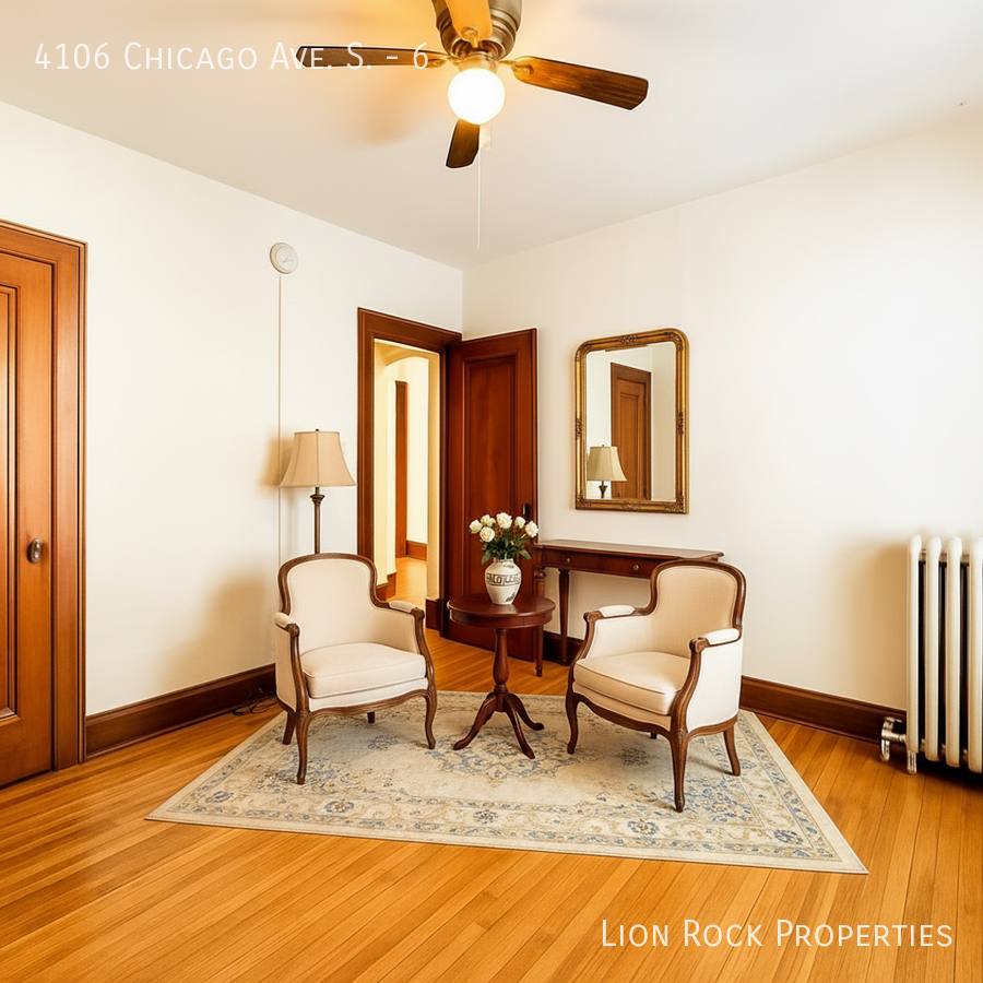 Welcome to Unit 6 at 4106 Chicago Ave. S, a cozy and well-maintained 1-bedroom, 1-bathroom apartment located in the heart of the Powderhorn neighborhood. This inviting unit features hardwood floors, large windows for plenty of natural light and a functional layout perfect for comfortable urban living. Enjoy the convenience of on-site laundry, secure building access and nearby street parking. Situated just steps from the lively Chicago Avenue corridor, you'll be close to coffee shops, restaurants and local favorites like Midtown Global Market, Powderhorn Park and public transit options for easy commuting. Apartment Features: 1 bedroom / 1 bathroom. Refinished hardwood floors. Fresh paint and clean finishes. Large windows with great natural light. Ample closet space. Radiator heat (included in rent) Ceiling fans. Prime Location: Steps from coffee shops, restaurants and local retail. Short walk to Powderhorn Park. Quick access to public transit and major routes. Near Midtown Global Market, Lake Street and Uptown. Easy commute to downtown Minneapolis. Don't miss out on this fantastic opportunity. Pet friendly. Non refundable pet fee for cat is $150 and pet rent is $25. Non refundable pet fee for dog is $300 and pet rent is $45. Pet screening is also required $35. Renters Insurance or Liability insurance with a $100,000 Liability Coverage will be required. $150 administrative move in fee required. Utilities: Tenant is responsible for the electricity and their own cable, phone or internet service....