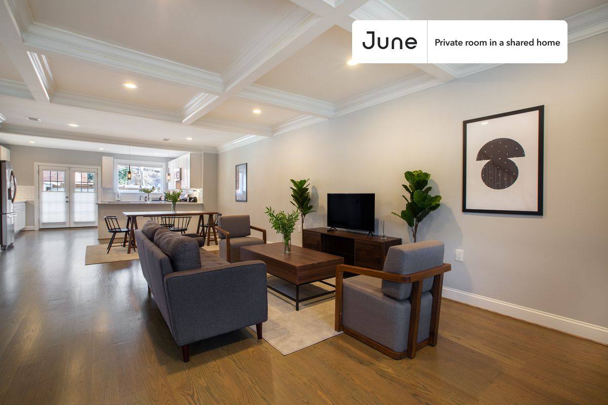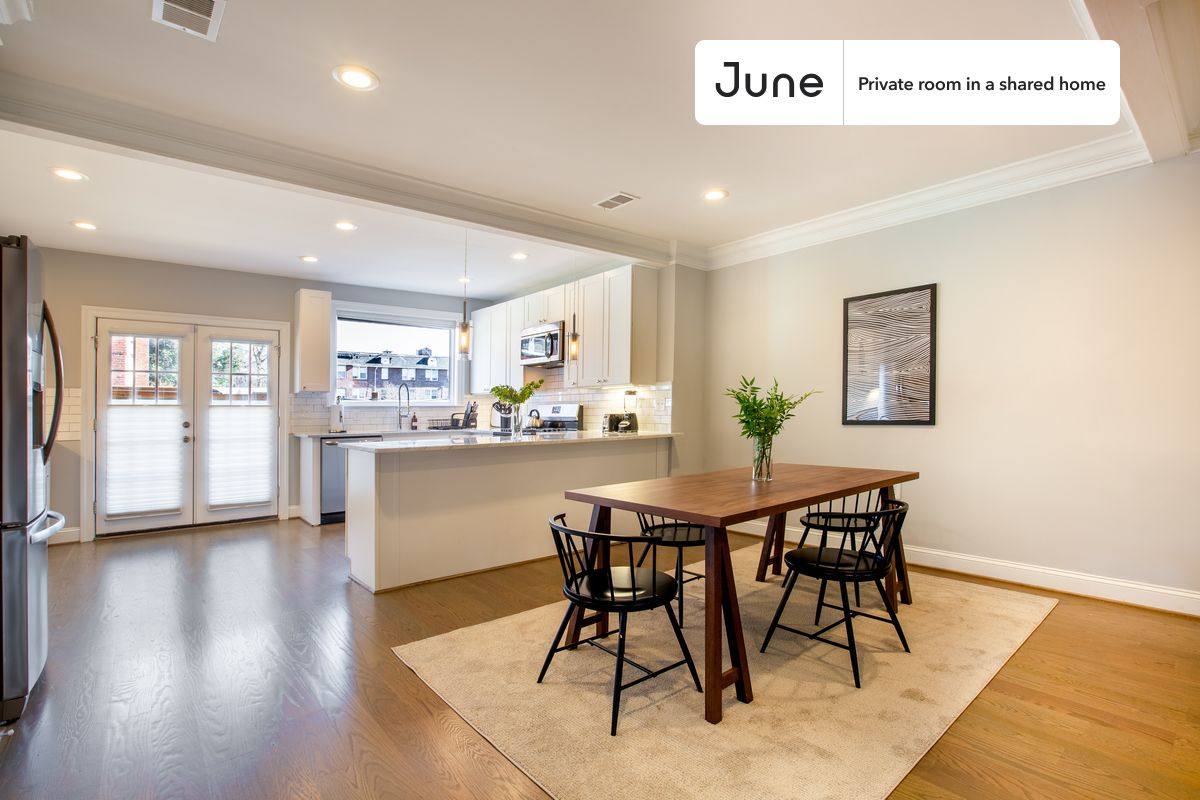 This is a private room in a shared apartment. You will have your own bedroom and shared common areas (kitchen, bathroom, etc). with other residents. Queen bedroom in a 4 bedroom / 3.5 bathroom apartment. This Queen room in Petworth offers flexible lease lengths, including a standard 12-month term and options up to 18 months. You pick your custom start and end date. Monthly rent rate is determined by furnishing preference, move-in date and move-out date. Amenities of this home: Dishwasher, Patio, Furnished Common Areas, WiFi - Paid separately (High-Speed), Guarantors Allowed, 32-inch Flat-Screen Tv, Dining area, Dine in kitchen, Central A/C (Common space), Laundry in home (free), Front porch, Back porch, Hardwood Flooring, Microwave, Oven, Refrigerator, also, this unit is conveniently located, several local parks, restaurants and bars are just minutes away. About June Homes: Welcome to the easiest rental experience of your life. Rent furnished or unfurnished apartments available with a flexible lease, including a standard 12-month term and options up to 18 months. As a resident, you'll have access to 24/7 support and monthly cleanings of the home's shared spaces. Brokers welcome. Contact us for more details. Kindly note that the minimum stay duration would be 31 days.