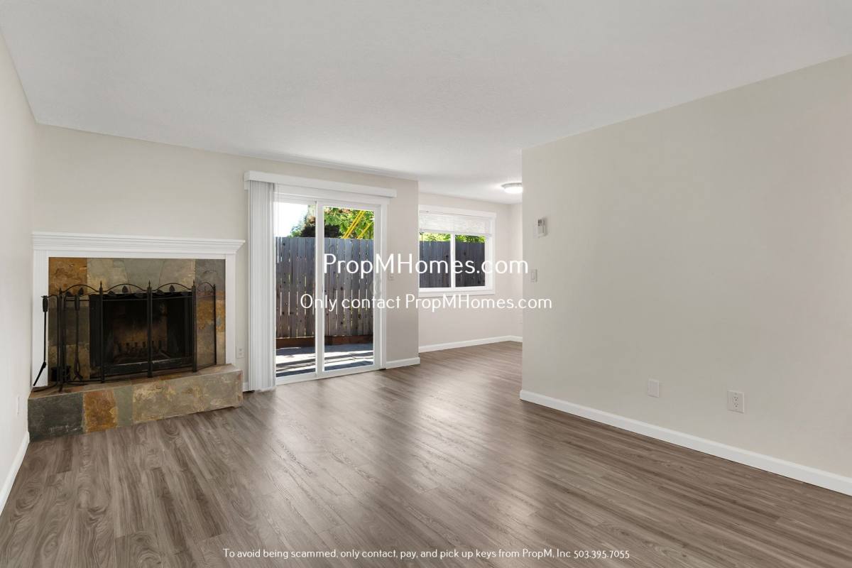Love Where You Live. Your home resides in the Denney Whitford neighborhood. Nearby parks include Looking Glass Park, Fanno Creek Trailhead and Camille Park. You are close to Washington Square Mall-perfect for shopping and dining. Bus stops on SW Denny Road offer easy public transportation and quick access to Highway 217 makes commuting simple and convenient. Deposit Special: Security deposit can now be paid in two separate payments with first and second months rent. Highlights: Updated interior with a spacious living area, wood-burning fireplace and dark wood-like flooring. Dining area off the living space with window and overhead lighting. Beautiful galley kitchen with dark wood cabinetry, laminate counters and stainless steel appliances. Two bedrooms and two bathrooms, including a primary suite with patio access and private bath. Additional bedroom with ample natural light and wood-like flooring. Updated bathrooms with shower/tub combo, vanities and modern fixtures. Long wrap-around fenced patio perfect for outdoor enjoyment. Attached two-car garage. One in-person tour per renter due to high demand. Virtual tours available upon request. Boost your approval chances by submitting all documents upfront. Utilities & Lease Info: Included in Rent: Garbage. Tenant Responsible for: Electric, Water, Sewer, Landscaping, Cable/Internet. Washer/Dryer: Included. Heating: Ductless Heat Pump w/ Ac. Cooling: Ductless Heat Pump w/ A/C (verify before applying) Pets: Two pets allowed (cats or dogs), 50 lbs max - $40/month per pet + $500 additional deposit per pet. Schools: Elementary: McKay. Middle: Whitford. High: Southridge. Electronic Move Ins, High Tech, Paperless, Mobile App and more....