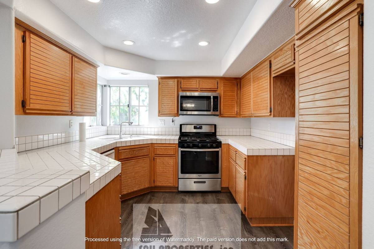 Charming end-unit home in Anaheim featuring 2 bedrooms and 2 bathrooms. Freshly painted interiors and new laminate flooring create a bright, updated feel, complemented by recessed lighting and high vaulted ceilings. A living area with a fireplace opens to a balcony and the kitchen offers tile counters. Washer and dryer hookups are provided for convenience. The two-car attached garage adds secure parking and storage and the unit's location ensures no one lives above or below. Ideal for those seeking a low-maintenance, move-in ready residence. Washer and Dryer hookups, Balcony, Recessed Lights, Freshly Painted, Fireplace, 2 Car Attached Garage, End unit, New Laminate Flooring, High vaulted ceilings, Tile Counters In Kitchen, No One Above or Below You, HOA Fees & Gardener. Pet Friendly.
