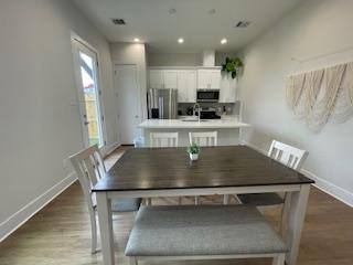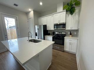 This new-construction home offers a bright, open-concept interior with high ceilings and a modern, streamlined aesthetic throughout. Large windows provide abundant natural light, creating an inviting living and dining area that flows seamlessly into the kitchen. The kitchen features quartz countertops, sleek contemporary cabinetry, stainless steel appliances and ample prep and storage space. Durable flooring throughout the main living areas offers both style and easy maintenance. All bedrooms are located upstairs, providing privacy and separation from the main living space. The primary suite features a spa-style bathroom with a soaking tub and a separate walk-in shower, creating a relaxing retreat. Additional bathrooms showcase modern tile, updated vanities and quality fixtures. The home includes smart-home features, in-unit laundry connections and energy-efficient systems. Available furnished or unfurnished, this home offers a move-in-ready option designed for modern living. Additional Storage, Air Conditioner, Alarm, Ceiling Fan, Controlled Access, Courtyard, Dishwasher, Disposal, Double Sink Vanity, Dryer, Patio, Pantry, Microwave, Linen Closet, Large Closets, Laminate Counter Tops, Island Kitchen, Individual Climate Control, Heat, Hard Surface Counter Tops, Garage, Furnished, Framed Mirrors, Private Patio, Range, Refrigerator, Tile Flooring, Vinyl Flooring, Wd Hookup & Washer.